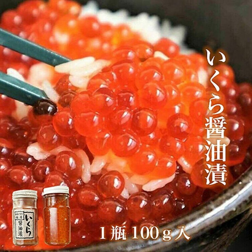 口の中に皮が残らない柔らかないくらは最高ランク品の証。使いやすい100グラム瓶でのお届けになります。