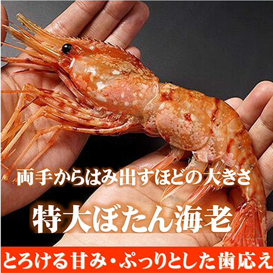 ボタンエビの超特大サイズ。通常サイズの2.5倍もあるジャンボサイズはなかなか手に入りません。